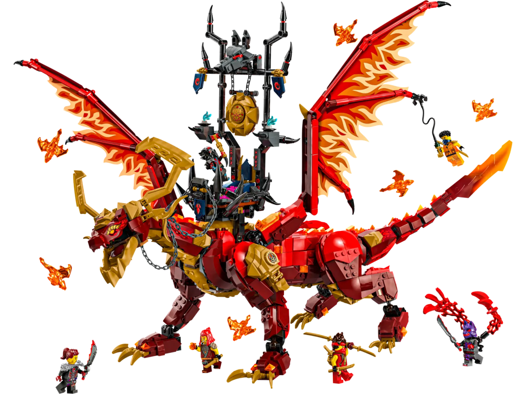 What is Ninjago? Everything I see about it seems positively cool, with such names as Dawn of Iron Doom, and, for this set right here, Source Dragon of Motion. I have no idea what that means, but man does that sound evocative as all heck. I particularly love the wing designs. The bonus flying fire dragons is also pretty good.